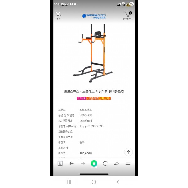 프로스펙스 치닝디핑 판매합니다 모델명은 HE664753입니다 구매 가격은 260,000원입니다